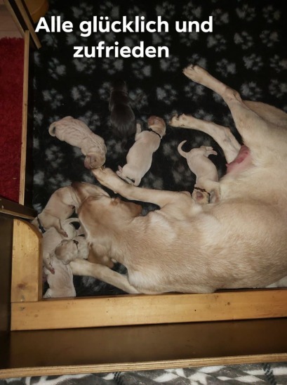 Sie werden bei uns im Wohnzimmer geboren und ziehen mit ca 4 Welpen in das Welpenzimmer . In der gesamten Zeit bekommen sie eine Rund um Betreuung. Ab der vierten Woche haben die kleinen dann