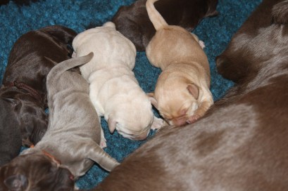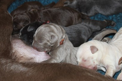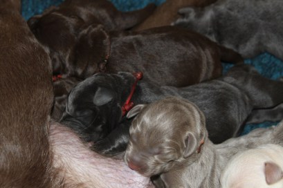 Am 6.5.2018 hat Laika wunderschöne Welpen in den farben charcoal, silber und Champagner zur Welt gebracht.